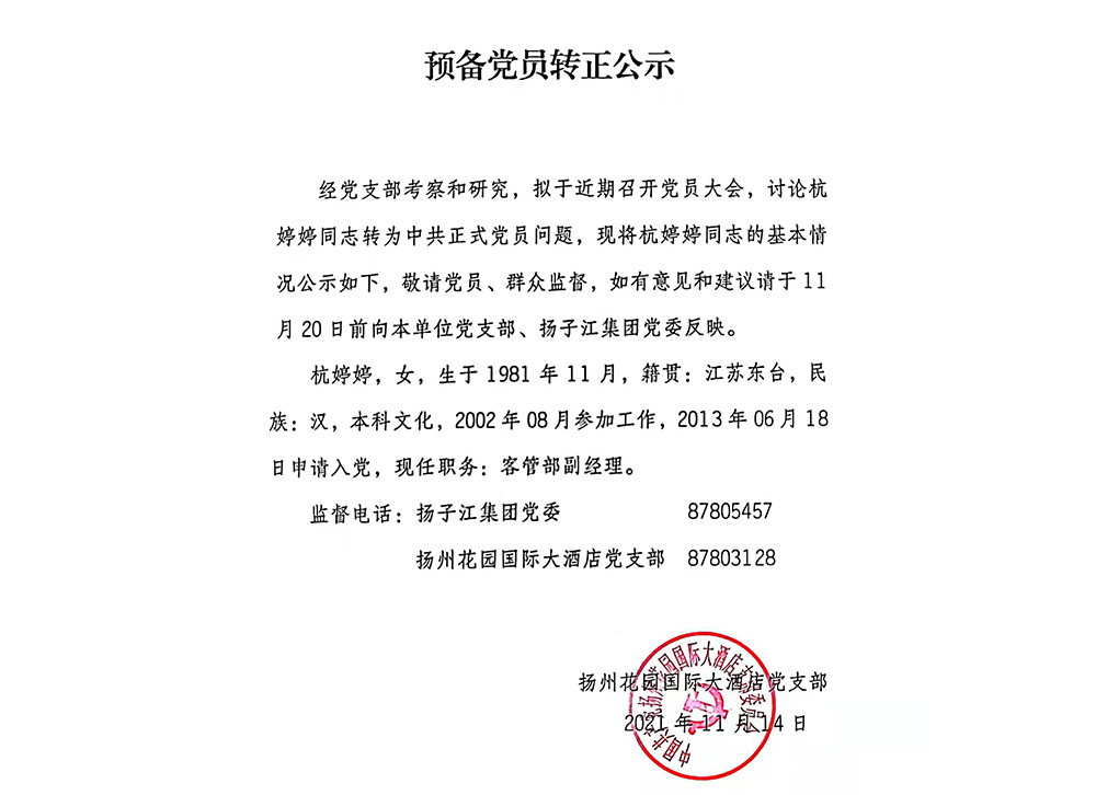 揚(yáng)州花園國(guó)際大酒店有限公司