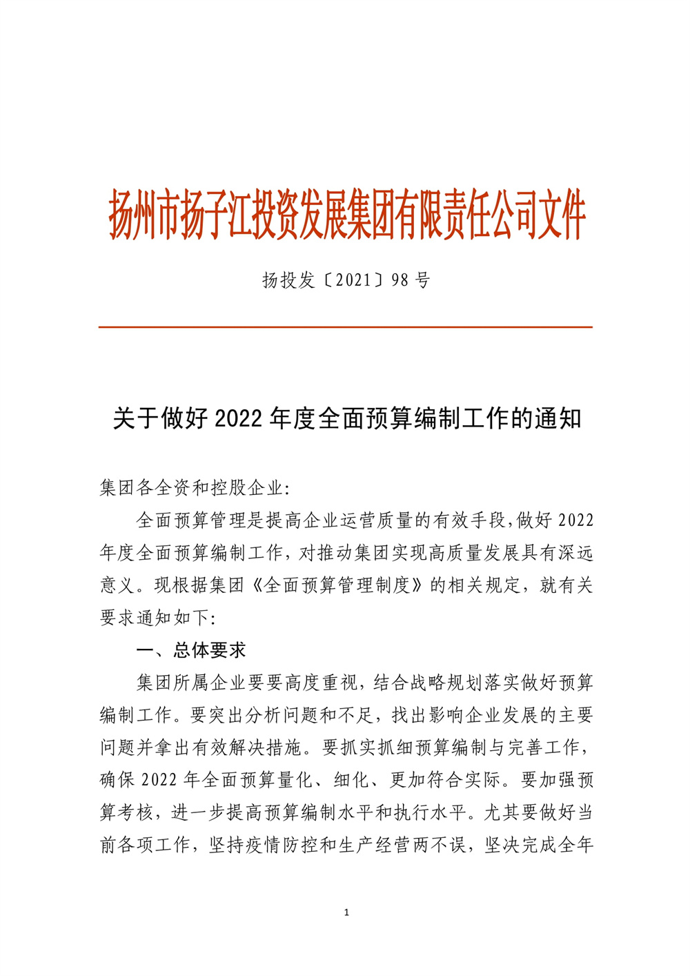 (2021-98)關(guān)于做好2022年度全面預(yù)算編制工作的通知